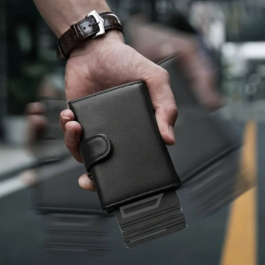 Portofel pentru Carduri SMART WALLET din Piele Naturală – Negru Elegant